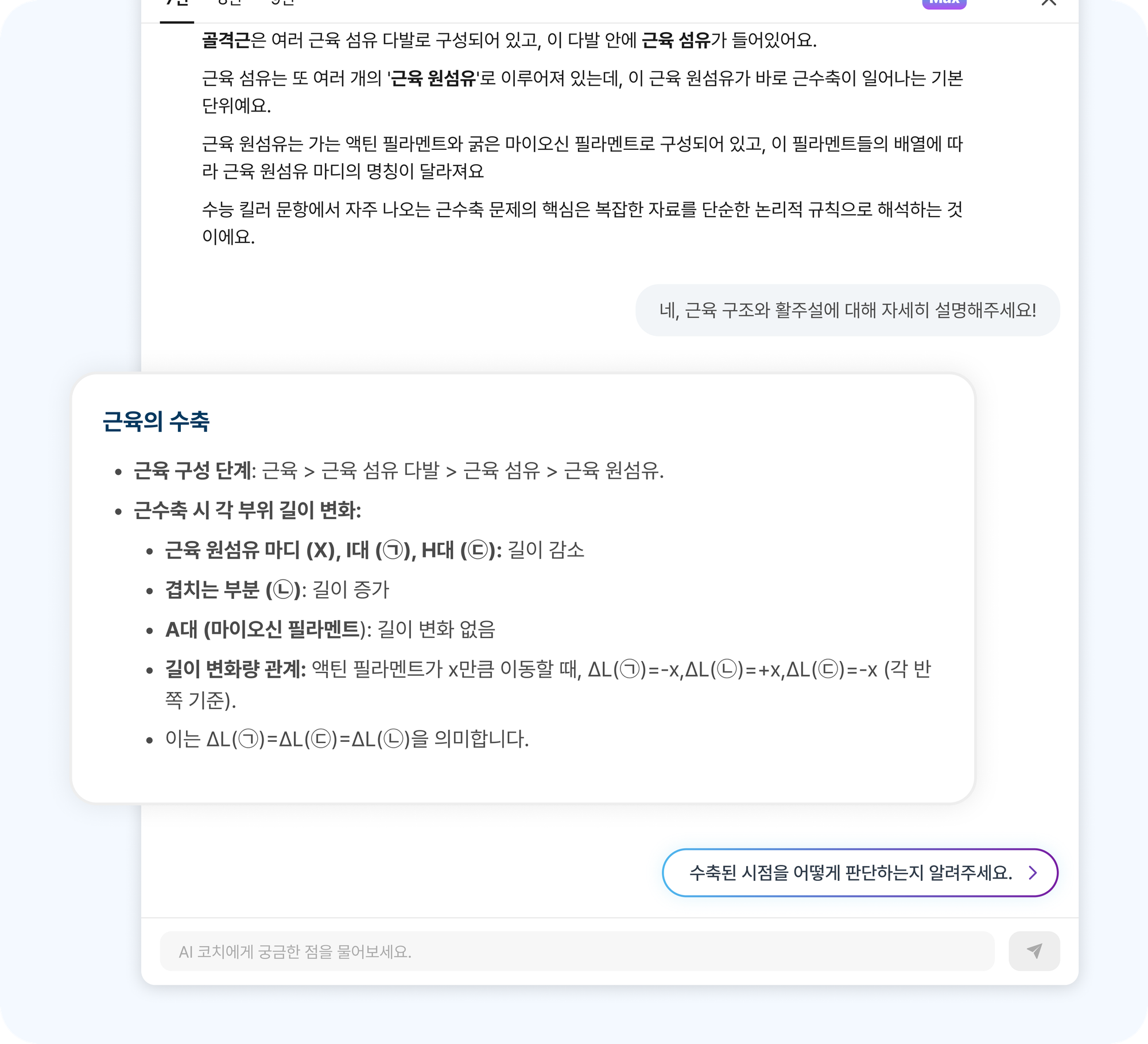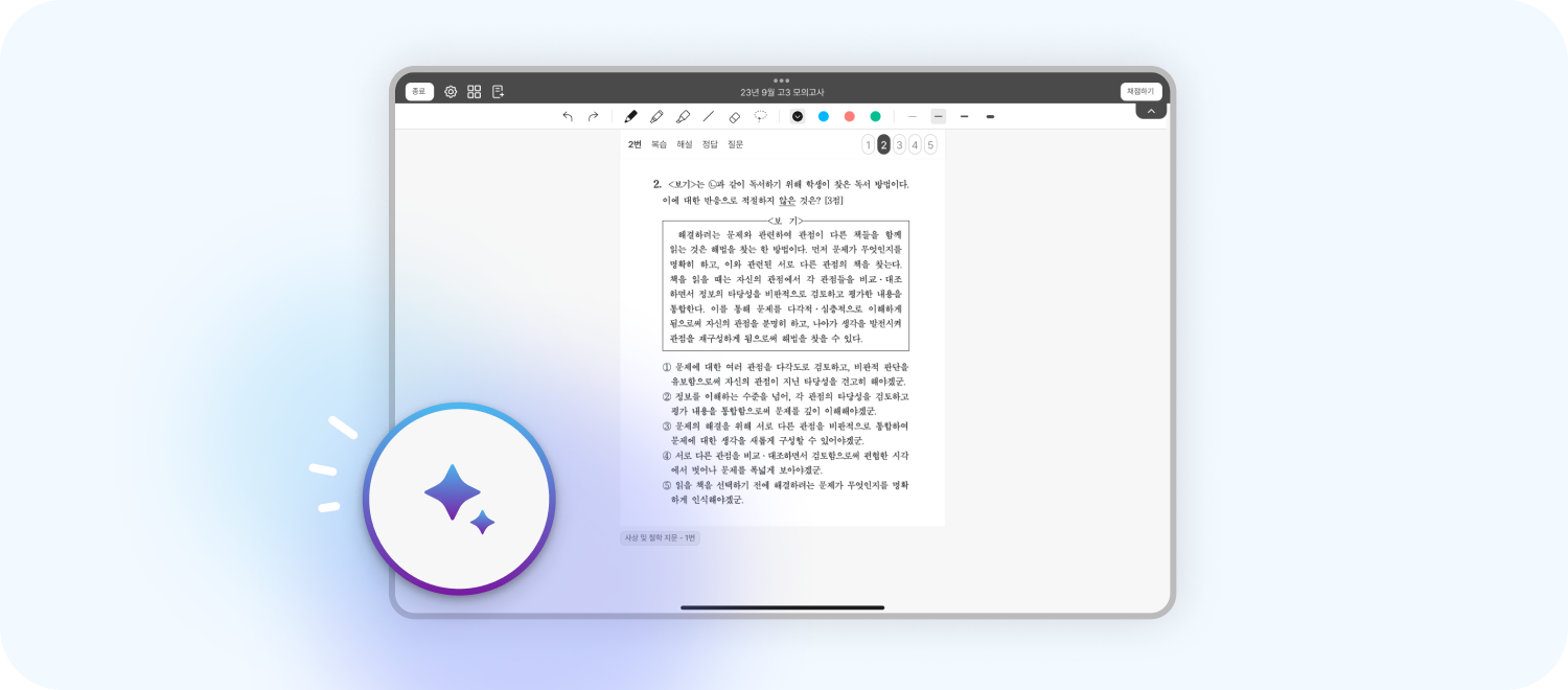 AI 코치는 역대 평가원/교육청의 모든 기출문제와 해설, 개념서를 바탕으로 답변하여 다른 AI 서비스보다 더 정확한 답변을 제공합니다.