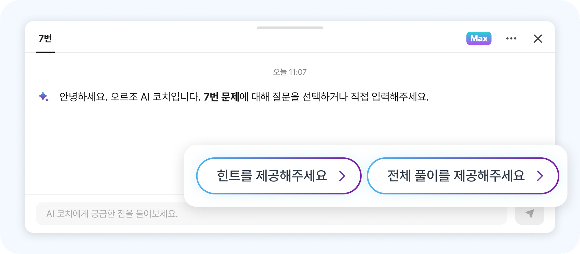 문제 풀이 화면 하단의 AI 코치 버튼을 누르세요.