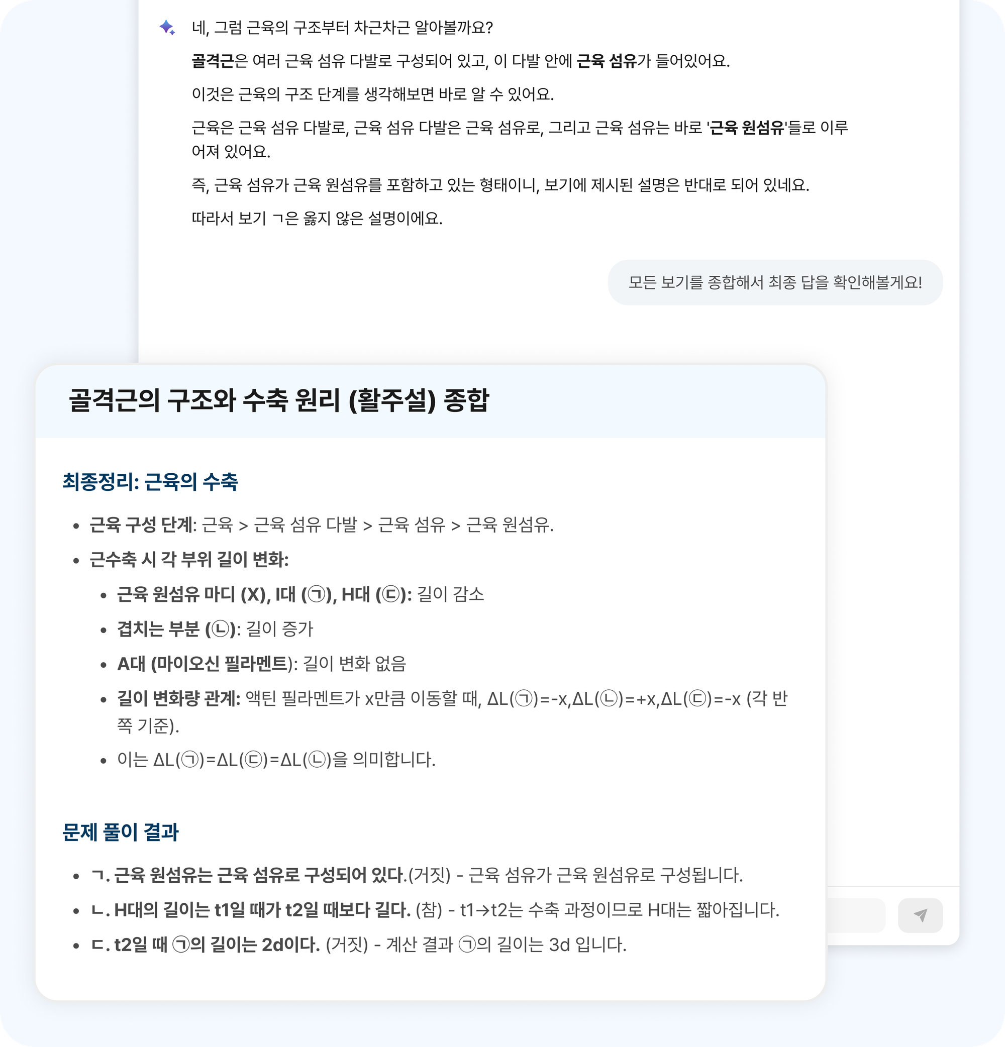 문제를 끝까지 풀고 나면, AI 코치가 핵심 개념과 풀이 과정을 정리해 줍니다.