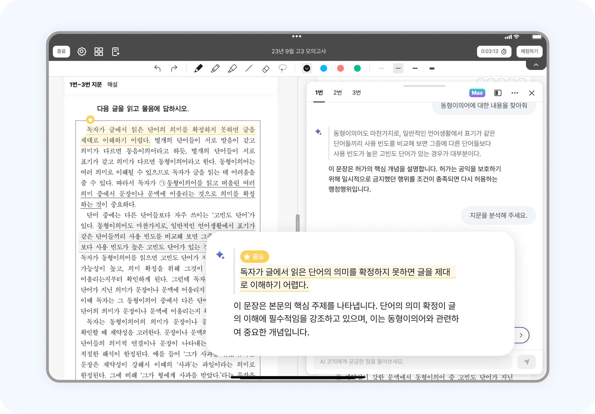 AI 코치는 답변과 연관된 문제 내용에 하이라이트를 해줘요.